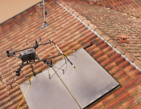 Utilisation de drones pour un nettoyage précis et respectueux de l'environnement de votre toiture.