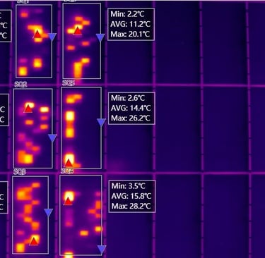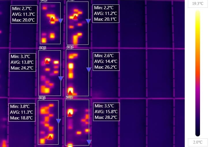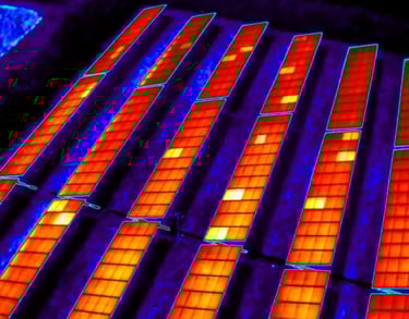 La thermographie des panneaux photovoltaïques permet de détecter les cellules défectueuses d'un panneau, ce qui permet d'éviter les pertes d'énergie.