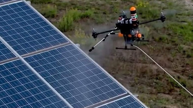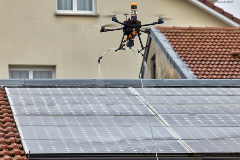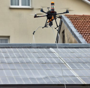 Nettoyage de panneaux photovoltaïque par drone, moins risquée, plus rapide !